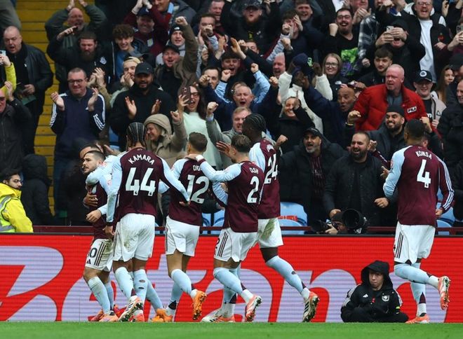 比賽第12分鐘,卡馬拉在禁區(qū)外拔腳怒射,門將倒地把球撲了出去。第23分鐘,卡馬拉犯規(guī),被出示黃牌。塔韋尼耶主罰任意球,直接射門,結(jié)果踢飛了。第27分鐘,阿萊士-希門尼斯犯規(guī),也拿到黃牌。阿斯頓維拉獲得任意球機(jī)會(huì)。布恩迪亞主罰,他直接射門,皮球越過人墻,鉆入球門!門將一點(diǎn)反應(yīng)都沒有。阿斯頓維拉取得領(lǐng)先。